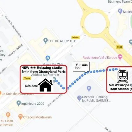 New- Relaxing Studio - 5 Min From Disneyland Paris van 22 m^2 biedt uitzicht op de stad en is op slechts 14 minuten lopen van het Val d'Europe winkelcentrum gelegen. Het is gelegen op slechts 10 minuten wandelen van Serris-Montevrain - Val d'Europe trainstation en op een korte afstand van Prague busstation.